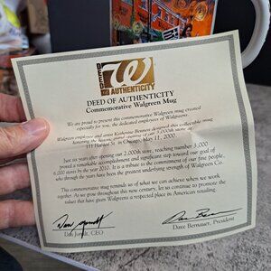 vintage coffee mug from Walgreens----> is a great addition to any collection. Celebrating the 3000th store opening, this commemorative mug comes with a certificate of authenticity, and box as pictured.
