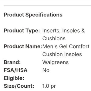 Walgreens Men's Gel Comfort Cushion Insoles, Size 7-13, 1.0 pr