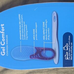 Experience superior comfort with Gel Comfort Cushion Insoles. Designed for optimal support, these blue insoles provide cushioning for all-day wear.