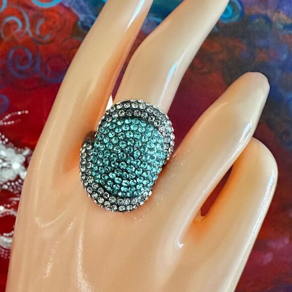 Walid Akkad Blue & White Pave Dome Cocktail Statement Ring ๐โจ
