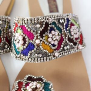 Walk Eaze Ethnic Multi Color Embellished Toe Ring Sandals Flats 9