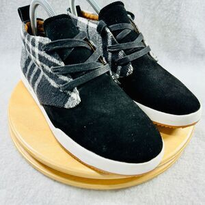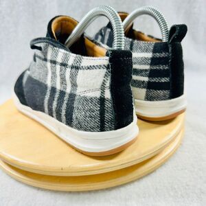 The Walk With Me Highlands Sneakers in black are designed for unisex adults and feature a plaid pattern. These casual sneakers are ideal for fall and are suitable for everyday wear. They have a mixed fabric upper, fabric lining, and a fabric insole, with a rubber outsole for durability. The lace-up closure and mid-top shoe shaft style provide a comfortable fit, while the round toe shape adds to the casual look. Manufactured in China, these sneakers are part of the Coldwater Creek model. They are pre-owned. Keywords: Walk With Me, Highlands Sneakers, black sneakers, unisex shoes, casual footwear, plaid pattern, fall fashion, lace-up sneakers, mid-top sneakers, round toe, pre-owned shoes, Coldwater Creek, mixed fabric sneakers, rubber outsole, everyday wear.