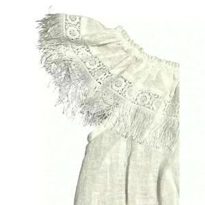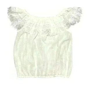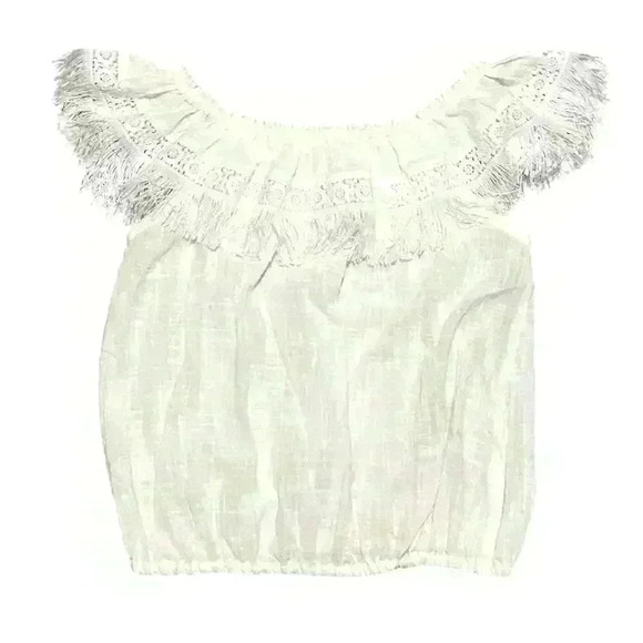 Walker & Wade. Cropped, Elastic Waist, Off-Shoulder Top. Fringe & Lace. Cotton