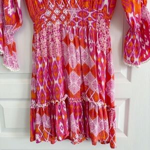 Walker & Wade Mia Ikat Print Dress Medium Flamingo