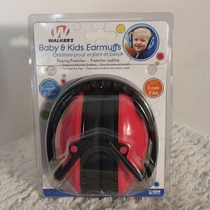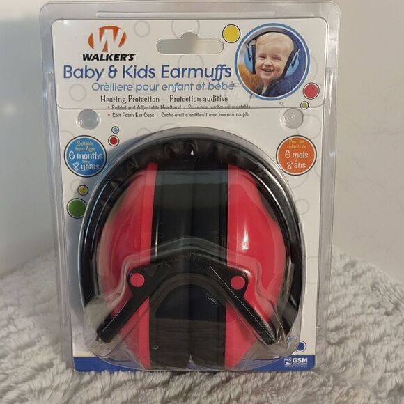 These New factory sealed black and pink Walker's baby and kids earmuffs are suitable from ages 6 months to 8 years old. Padded and adjustable headband and soft foam ear cups. They have a noise reduction rating of 23 decibels. All offers welcome.