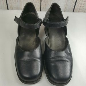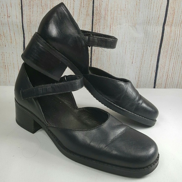 Walking Co Black Leather Mary Janes Italy Hook Loop Closure Ladies 8.5 EUR Sz 39