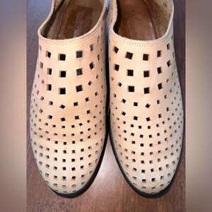 Walking Co Italy Perforated Nubuck Leather Tan Wedge Shoes Zip Back Women 10