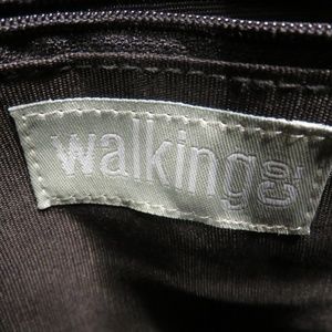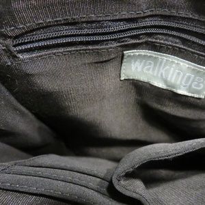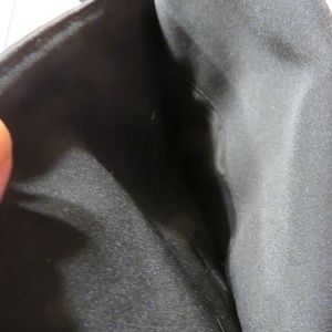 Adj. strap. Front flap has a deep wide zipper. Backside has a deep open compartment. Top of bag has deep open compartment, see last photo. Inside: deep zipper, open pouch and 3 credit card slots. This section is open on top but flap covers it. In front of open pouch there is a deep wide zipper compartment and in front of that an wide deep open compartment. It is either made of polyester or nylon. 10 1/2" tall, 9" wide, 2 1/2" deep. Very nice quality.