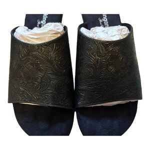 Walking Cradles Black Tooled Cath Leather Sandal - Women. NIB. Never worn.