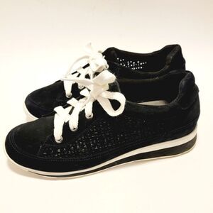 Walking Cradles Black White Suede Destin Lace Up Comfort Sneaker Size 7.5