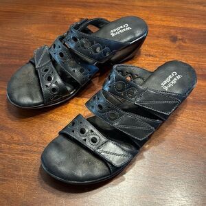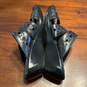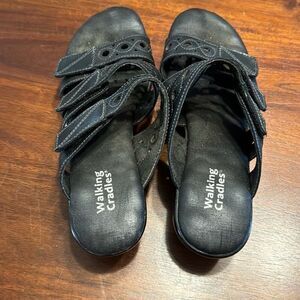 Walking Cradles Cho Black Leather Sandals Wedges Women’s 9 M