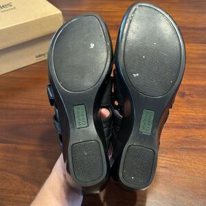 Great condition 2” heel height wedges black leather Velcro strap sandals. They do seem to run a bit more narrow. Women’s size US 9 M and come with original box.