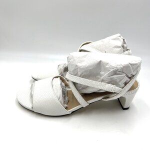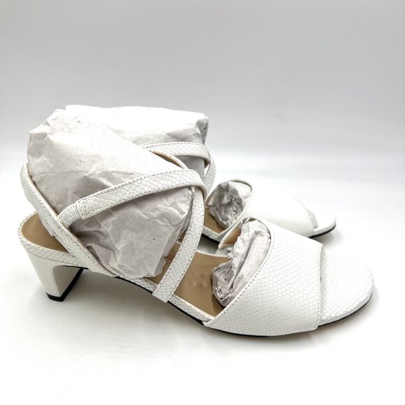 Walking Cradles women's white leather snakeskin embossed open toe comfort dress sandals / heels.