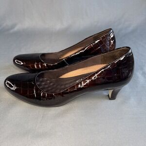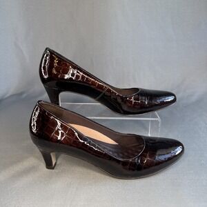 Walking Cradles Women's Brown Crocodile Patent Leather, Kitten Heel 9.5 N