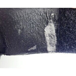 Adjustable hook and loop ankle strap for a snug fit. ** Chipped inner leather.
