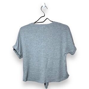 Walking on Sunshine Gray Waffle Knit V-Neck Tie Front Short Sleeve Crop Tee Top