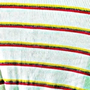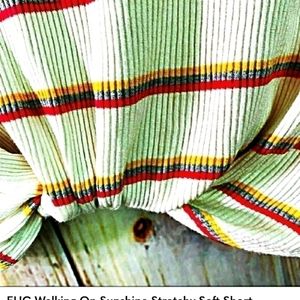 EUC: WALKING ON SUNSHINE LARGE ribbed knit, short sleeve top.Round neckline with twist knot in front. Purchased from Nordstrom. Cute striped top with white background and pink, yellow and green stripes.96% rayon and 4% spandex. Very soft and stretchy.