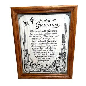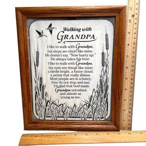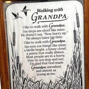 A touching 'Walking with Grandpa' poem encased in a wooden frame. This heartfelt 8x11-inch piece makes a perfect gift for grandparents and grandchildren alike, adding a sentimental touch to any room.
