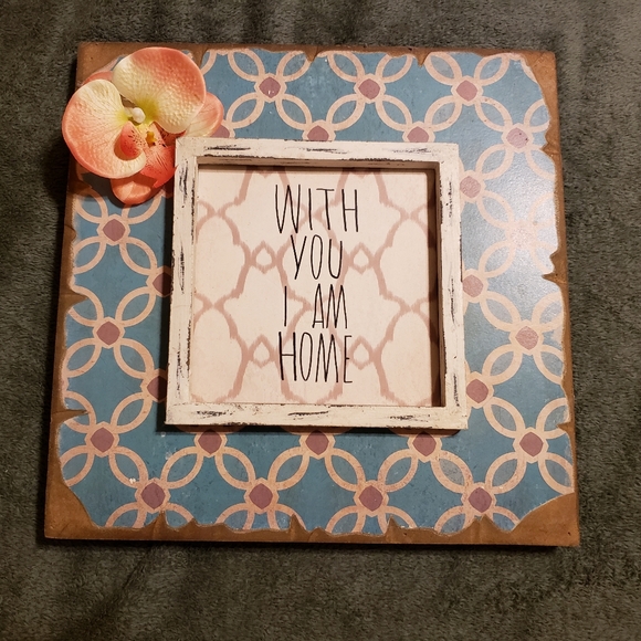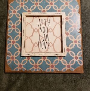 Charming sentimental sign that lovingly declares "With you I am Home." 12 inches square.