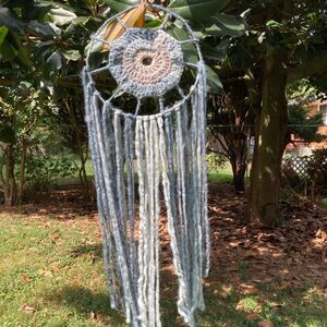 Wall Art Dreamcatcher Tapestry Boho Thick Natural WOOL Blue and Gray 11 x 32 in