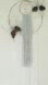 Materials - white and gray acrylic yarn, glittered pine cone clusters with sheer ribbon accent, metal double ring, large crystal teardrop with small circle crystal.