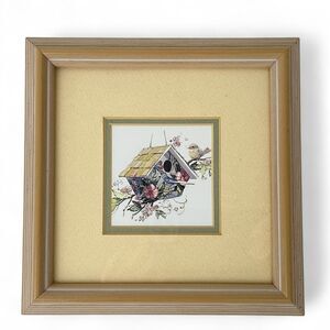 Wall Art Set 2 Prints Matted Wood Frame Glass Cover Birdhouses Flowers 7x7
