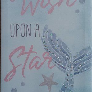 Wall Art Unframed CANVAS, depicting a MERMAID TAIL in PASTEL Colors & 3-D SEQUINS with QUOTE "WISH UPON A STAR" by Special Moments.