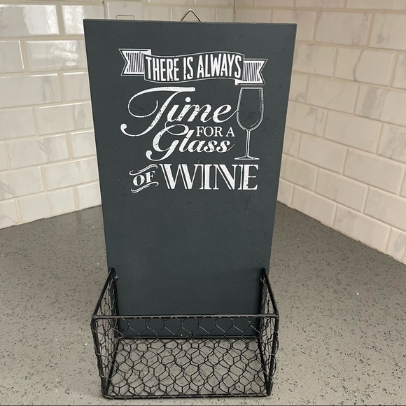 Wall Basket & Sign "There Is Always Time For A Glass Of Wine" Decor