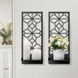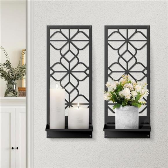 Unique Decor: Open your artistic talents to match multiple rustic ornaments with these black metal wall candle holders. with candles, jars, vases, small plants, or other decorative pieces standing on the sconces, they would be unique rustic wall decors for your home.