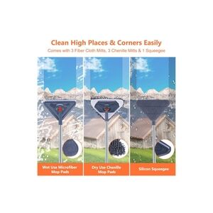 85 Inch Wall Cleaner with Long Handle, 360° Rotatable Wall Mop, Wall Washer Cleaner Tool for Walls/Ceiling Fans/Dust/Baseboard/Floors Clean, 6 Replacement Pads, 1 Squeegee Scraper Strips, 1 Mop Holder.