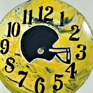 This clock has a foot ball helmet design.