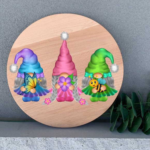 Wall Decor 12" Thin Birch Wood Round Handmade Gnome Spring Wall Art Door Hanging