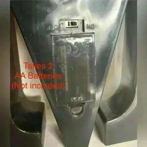 9” wide, 9” height. Battery operated (2 AA batteries). Material: plastic