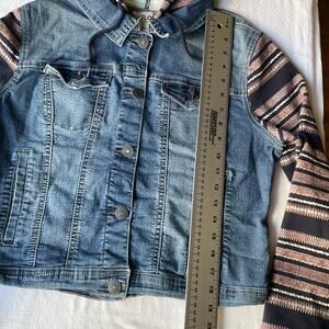 Wall Flower Kid’s Denim Jacket with Hoodie, size XL, Blue & Tan, Many Pockets