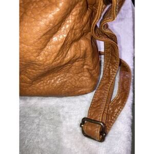 The interior is lined with microfiber in a brown color, and the purse features a zip closure. This medium-sized crossbody purse is part of the Wall Flower product line and is a designer piece that will complement any outfit. Whether you're a fan of vintage or modern styles, this purse is a great addition to your collection.