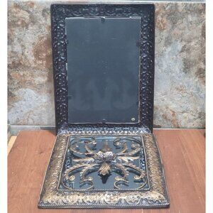 Wall Hanging Decor Mirror Metal Floral Pattern Overlay Wrought Metal Frame Set of 2