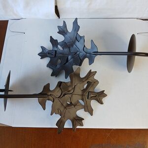 Wall Hanging Oak Leaf Metal Candle Holders Set of 2 Brown Autumn Fall Farm Decor