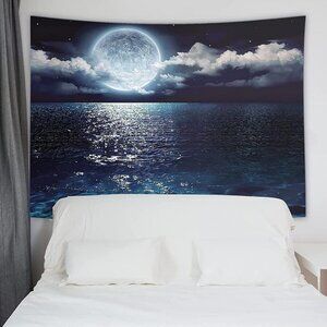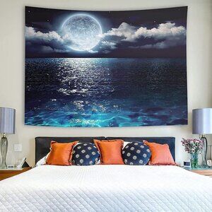 -【Well-Designed】This tapestry has vivid colors and full of mystery as wall hanging decoration. On the tapestry, there is a bright moon and a wide sea surface, which can be used for meditation, the sea can radiate your thoughts, and the moon can focus your attention.