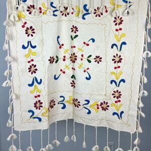 Wall Hanging Tapestry Table Cloth Ceremony Rug Embroidered Tassles Gold Floral