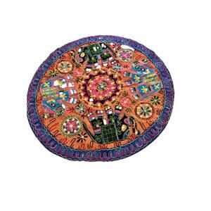 This wall hanging table topper is a round, 35-inch diameter piece made from 100% cotton fabric with intricate elephant embroidery and mirror accents. The floral pattern and pink color give it a Bohemian, art deco style that is perfect for any room in the house. Handcrafted in India, this unique tablecloth is ideal for teenagers, men, boys, adults, and girls looking to add a touch of boho charm to their living space. Care instructions recommend hand washing to preserve the intricate details of the embroidery and mirror accents.