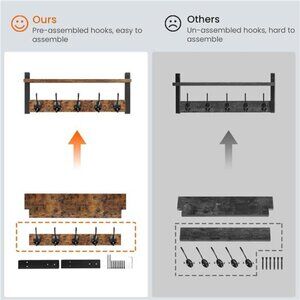🧿QUICK AND EASY TO ASSEMBLE: Come with durable screws, anchors and easy-to-understand instruction, pre- drilled holes for mounting brackets, the coat hook shelf can be easily assembled and firmly put in the wall