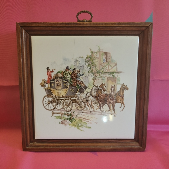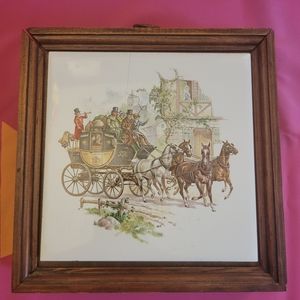 Title key frame with removal tile cover. Has a little split see last photo. Tile is made well, the tile is mounted to wood. Painted 🐎s pulling London carriage.