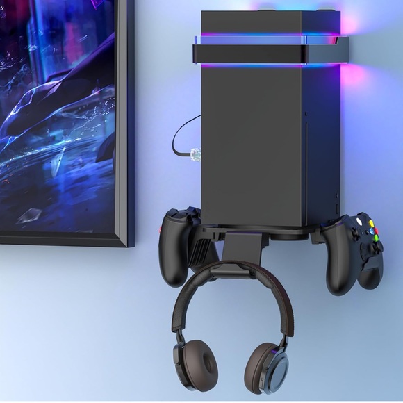 Wall Mount for Xbox Series X/S-Wall Mount Kit with 2 Controller Holder &1 Headset Stand & RGB Light, Xbox series X/S Wall Mounted Bracket Shelf Stand- Safely Organize Your Xbox X/S Series Accessories