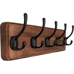 🧿Rustic wall mounted coat rack with 5 hooks;Pine Solid wood base, load capacity of 8kg.