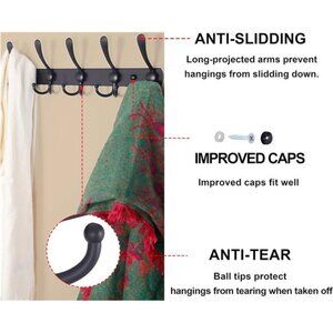 🧿3.【ANTI-TEAR & ANTI-SLIDDING:】Featuring long-projected arm and ball tips, the wall mounted coat hook well pretects your hangings from tearing or slidding off.