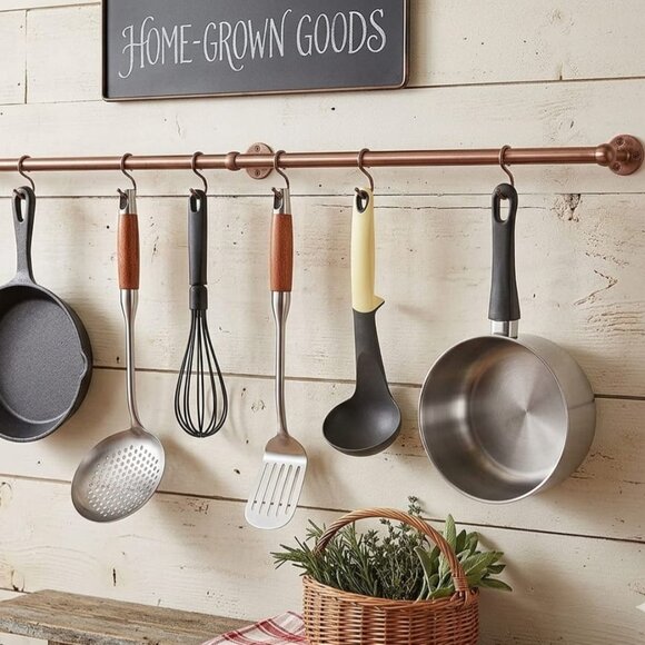Stainless Steel Wall-Mounted Hanging Pot and Pan Rack with Adjustable S Hooks