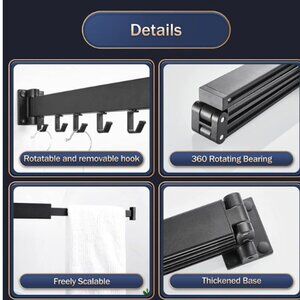 【Can be folded left and right and up】This wall-mounted drying rack can help you save space more effectively with its three-fold design. Not only can it be folded horizontally against the wall, but it can also be folded vertically upwards. This feature is particularly useful when you have limited horizontal space and need to utilize the vertical space for drying clothes. This drying rack's ability to hang clothes in different directions showcases its advantage over traditional hangers.