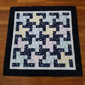 Wall Quilt 38" Square Dragons Castles Pinwheel Pink Blue Floral Hearts Baby Room