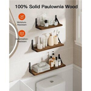 🧿Sturdy and Stylish Design: Each wall shelf is built with a 0.6" thick natural paulownia wood board and powder-coated steel brackets for durability.
