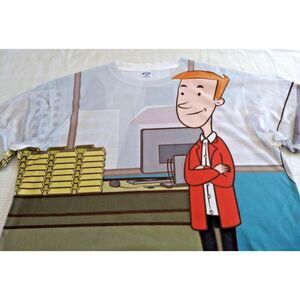 Cool All Over Graphic Print from Vapor Apparel depicting a Wall Street Trader / Gold Bars in a High Rise Skyscraper Office is in very good pre-owned condition - no rips, tears or holes.